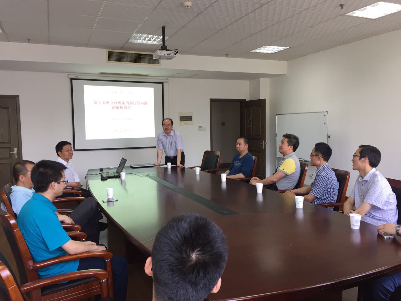 做了题为“基于非傅立叶理论的热传导问题的解析研究”的学术报告。报告内容丰富、生动、精彩,介绍了基于CV模型和单项延迟热传导模型开展的激光脉冲加热下热传导问题的解析解研究,对公司相关科研工作具有借鉴作用。同时,王晋宝教授还结合自己多年的研究经历,讲述了非傅立叶传热模型的研究进展。王立峰教授主持了此次报告会。