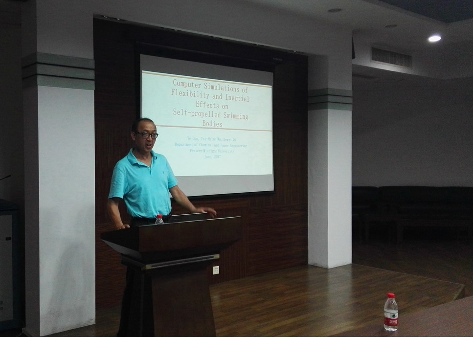 应公司航空宇航公司空气动力学系赵宁教授邀请,美国西密歇根大学化学及造纸工程系DeweiQi教授于2017年6月8日至11日访问了公司,并于6月9日为公司师生做了题为“Lattice-Boltzmann lattice-spring simulations of flexibility and inertial effects on deformation and cruising reversal of self-propelled flexible swimming bodies”及“A model of studies of the effect of bending of microvilli of Leukocyte on its adhesion”的学术报告。报告内容丰富、生动、精彩,分别介绍了格子玻尔兹曼方法和格子弹簧模型在变体自驱动和血液细胞运动问题中的应用等前沿研究工作,对公司相关科研工作具有借鉴作用。空气动力学系副主任吴杰教授主持了此次报告会。