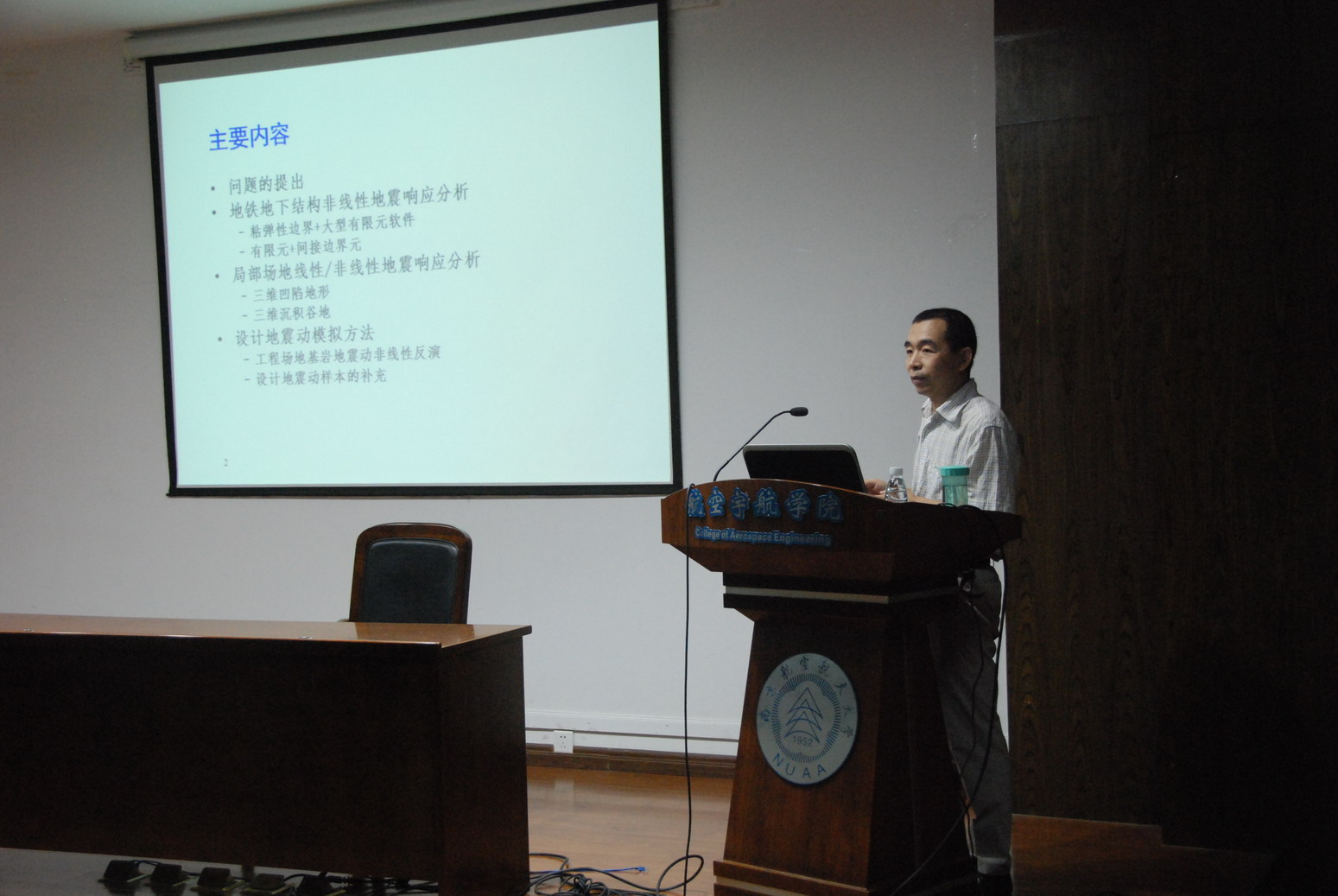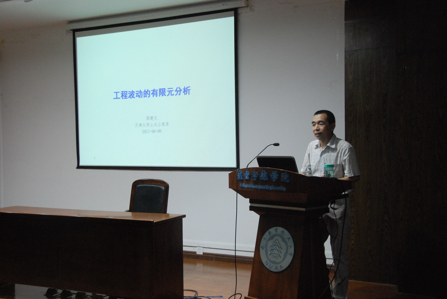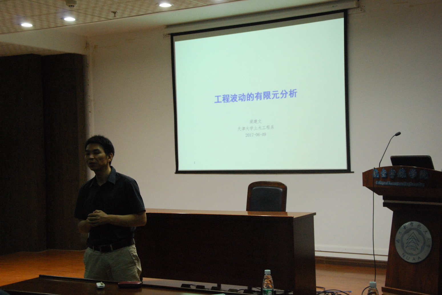应公司航空宇航公司土木工程系陈少林教授邀请,天津大学梁建文教授于2017年6月9日访问了公司,为公司师生做了题为“工程波动的有限元分析”的学术报告。报告介绍了地铁地下结构非线性地震响应分析技术,包括基于粘弹性边界和大型有限元软件的分析技术、有限元-间接边界元耦合分析技术,以及三维凹陷地形、沉积谷地等局部场地的非线性地震响应分析技术。另外,介绍了设计地震动模拟方法,包括工程场地基岩地震动非线性反演方法、设计地震动样本补充方法等。提问环节,梁建文教授和公司师生就相关问题进行了讨论。报告内容丰富、生动、精彩,对公司相关科研工作具有借鉴作用。陈少林教授主持了此次报告会。