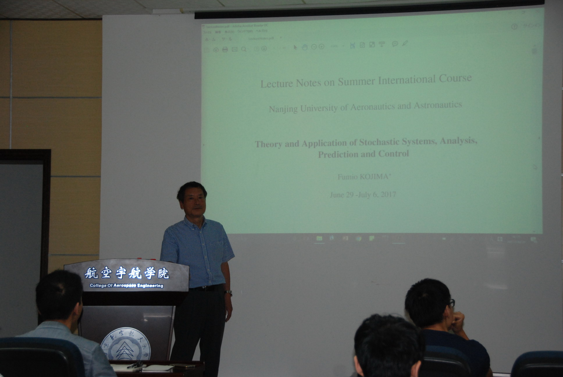 应公司航空宇航公司机械结构力学及控制国家重点实验室裘进浩教授邀请,日本神户大学名誉教授Fumio Kojima教授,于2017年6月29日至7月8日访问了公司,并于6月29日至7月6日为公司研究生讲授了题为“Theory and Application of Stochastic Systems � Analysis, Prediction and Control”的国际课程。课程内容丰富、生动、精彩,介绍了随机系统的辨识、优化及控制方法,对公司相关科研工作具有借鉴作用。同时,Fumio Kojima教授还结合自己多年的研究经历,讲述了随机系统的相关理论在石油勘探、航天器天线的结构分析等领域的应用。裘进浩教授主持了此次报告会。