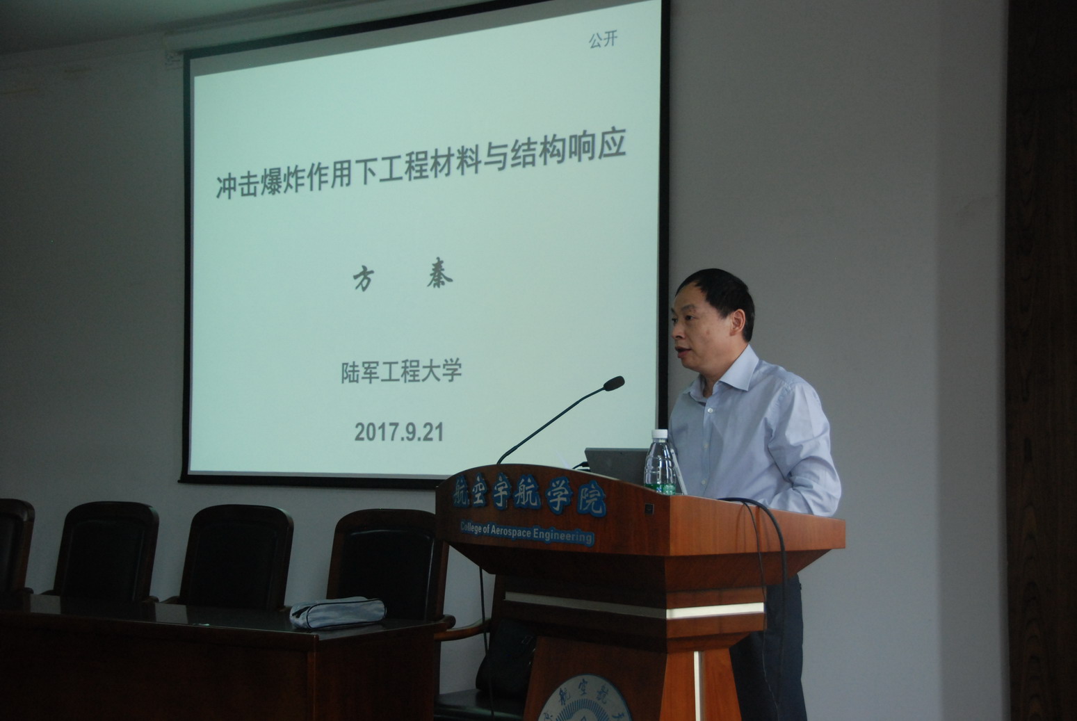 应公司航空宇航公司土木工程系余红发教授邀请,陆军工程大学副董事长、少将军衔、防护工程学科首席教授、博导方秦教授于2017年9月21日访问了公司,并为公司师生做了题为“冲击爆炸作用下工程材料与结构响应”的学术报告。报告介绍了冲击爆炸下混凝土材料与结构性能的研究背景、研究方法、工程应用及取得的研究成果。报告内容丰富、生动、精彩,对公司相关科研工作具有重要借鉴作用。同时,方秦教授还结合自己多年的研究经历,讲述了从事科学研究方面的体会,分享了研究心得。航空宇航公司经理夏品奇教授主持了此次报告会。
