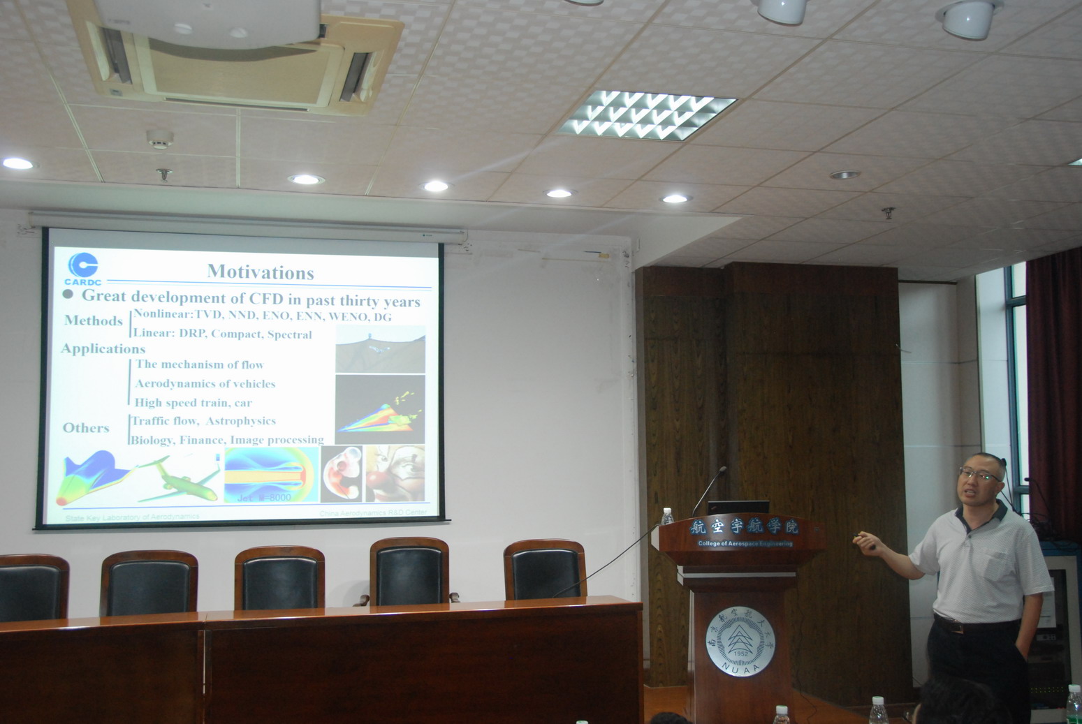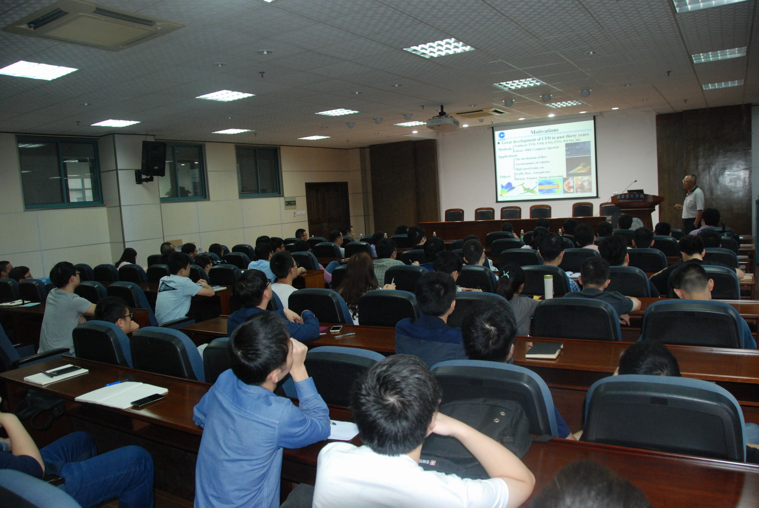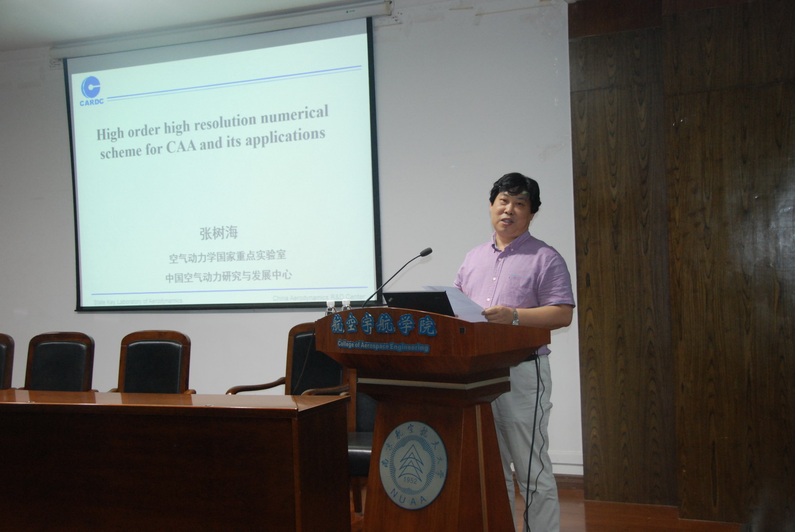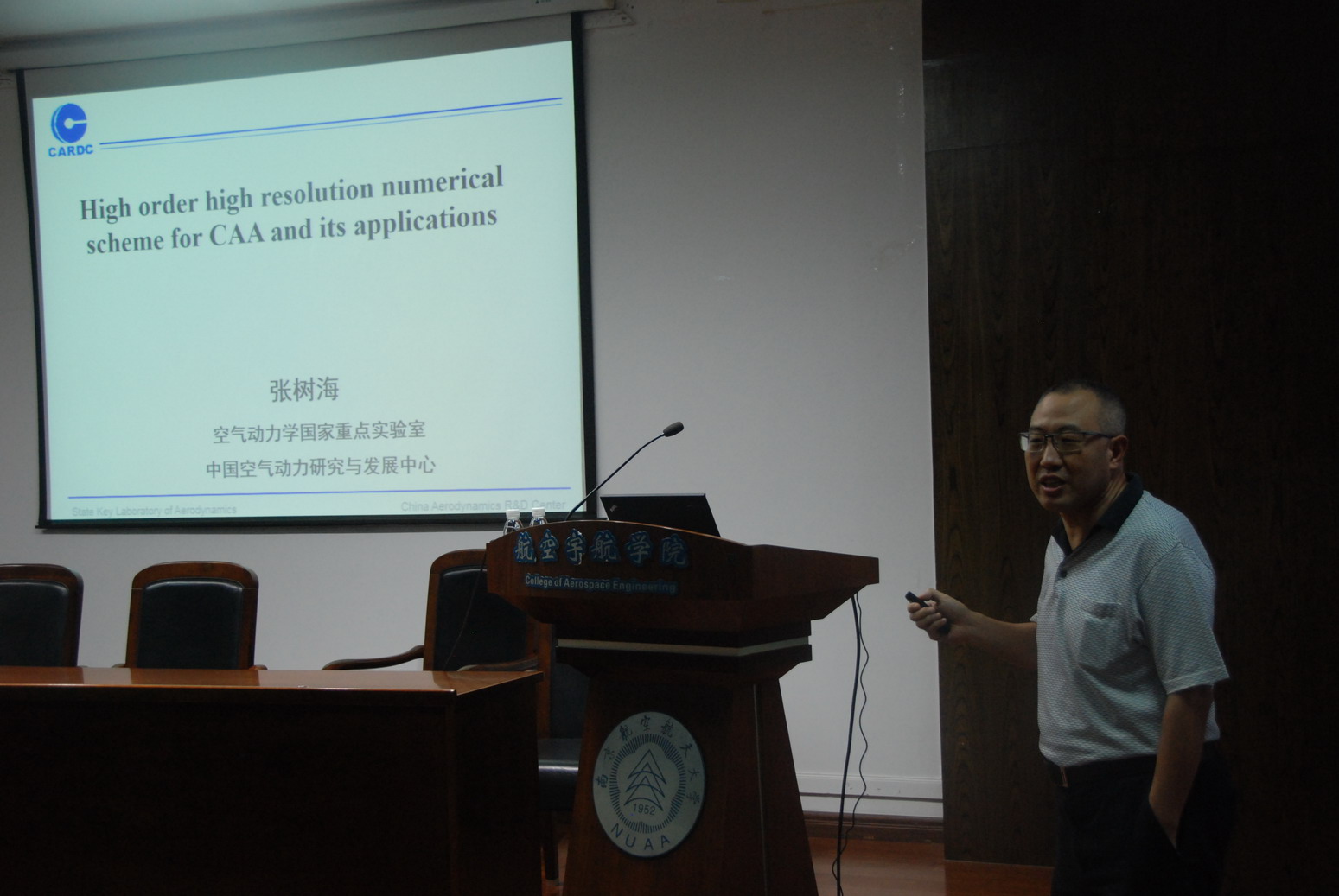应公司航空宇航公司直升机旋翼动力学国家级重点实验室招启军教授邀请,中国空气动力研究与发展中心、空气动力学国家重点实验室张树海研究员于2017年9月26日至28日访问了公司,并于9月27日为公司师生做了题为“针对计算气动声学的高阶精度高分辨率数值格式及其应用”的学术报告。报告介绍了针对气动声学计算所做的一些工作,包括基本消除了WENO格式计算定常激波问题时在激波下游出现的微弱的非物理波动,发展了类谱分辨率的高阶精度紧致格式,采用这些格式,对一系列旋涡主导的流动噪声进行了直接数值模拟,分析了气动噪声产生机制,内容丰富、生动、精彩,对公司相关科研工作具有借鉴作用。同时,张树海研究员还结合自己多年的研究经历,讲述了科研过程中的一些心得体会。高存法教授主持了报告会。