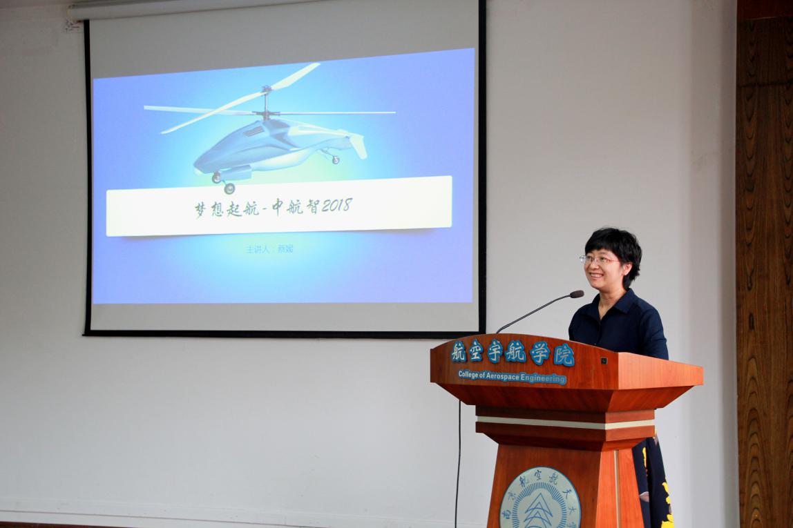 最后由蔡媛致辞,她表示自己十分高兴能来到南航参加此次颁奖典礼,并向大家介绍了中航智公司。