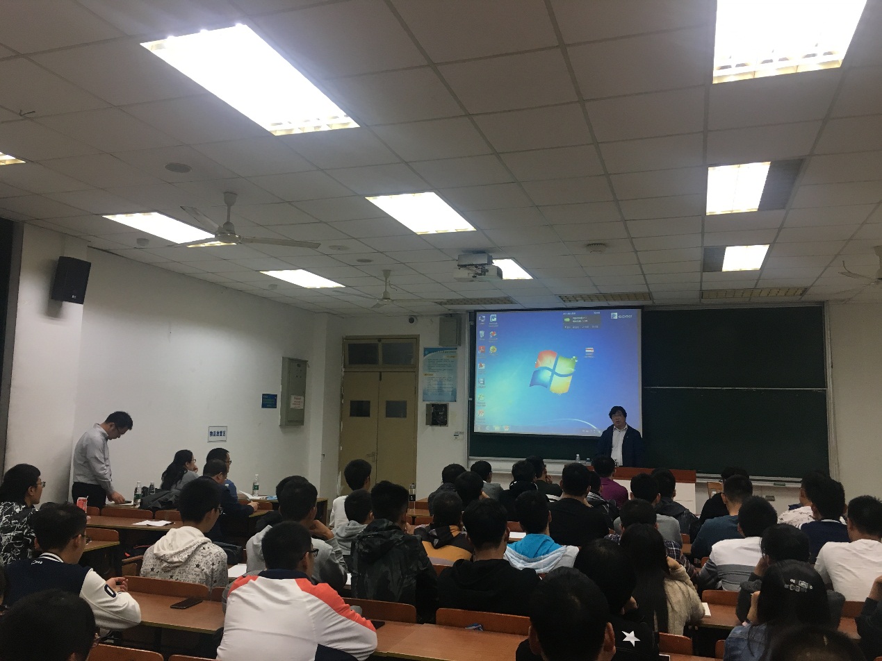 接着,高存法向新生介绍了胡自力、樊牧、尚岩、师岩这四位优秀的青年助教,四位助教也都各自向同学们分享经验、提出寄语。樊牧、尚岩提出,学习不能放松,员工应主动和其联系;胡自力、师岩更是分享自己大学时代的经历,胡自力心系“不要被电脑玩弄,而要支配电脑”这个观念,最终征服编程;师岩每天坚持花一个多小时专注于数学分析,最终拿到满分。听完四位助教的分享,同学们纷纷表示赞同,高存法也向同学们指出:应以这几位助教为标杆,从学习上、思想上向其看齐。之后,为让两个班新生更好的了解工程力学,高存法简单的介绍了公司与力学的基本情况。