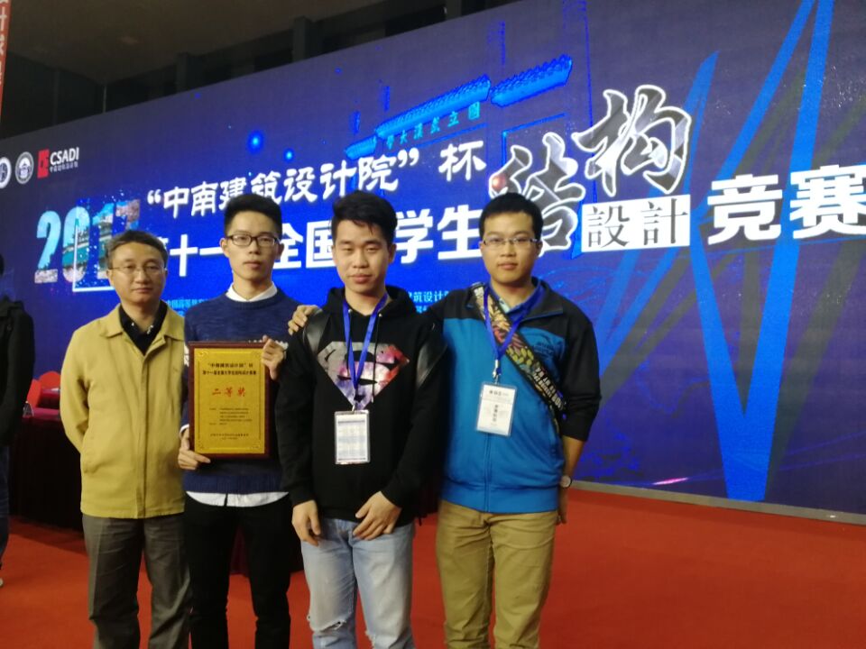 10月18-22日,由中国高等教育学会工程教育专业委员会、高等公司土木工程学科专业指导委员会、中国土木工程学会教育工作委员会和教育部科学技术委员会环境与土木水利学部共同主办的2017第十一届全国老员工结构设计竞赛在武汉大学举行。公司派出了由张耘、叶泽华和徐海斌三位同学组成的代表队参赛,领队为程晔老师,指导教师为唐敢、王法武老师。在经过激烈比拼后获得二等奖,在108支参赛队伍中排名第22位。