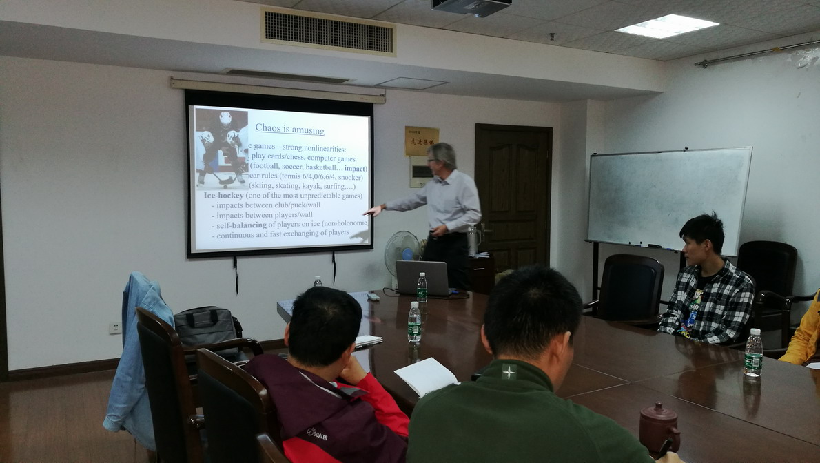 应公司航空宇航公司机械结构力学及控制国家重点实验室王在华教授邀请,匈牙利布达佩斯工业与经济大学应用力学系教授Gabor Stepan博士于2017年10月19日至30日访问了公司,并于10月24日为公司师生做了题为“Quantization and sensory threshold in balancing with delay”的学术报告。报告介绍了包括各类平衡问题研究中的研究进展,例如,采样与舍入误差、控制器与滤波器中的时滞效应、数字采样控制系统中的微混沌、时滞加速度反馈等内容。报告内容丰富、生动、精彩,对公司相关科研工作具有借鉴作用。同时,Gabor Stepan博士还结合自己多年的研究经历,与现场听众分享了研究心得和体会,其中关于如何结合并平衡公司建设发展需求与个人学术兴趣来选择研究课题方面的介绍对听众具有启发意义。王在华教授主持了报告会。