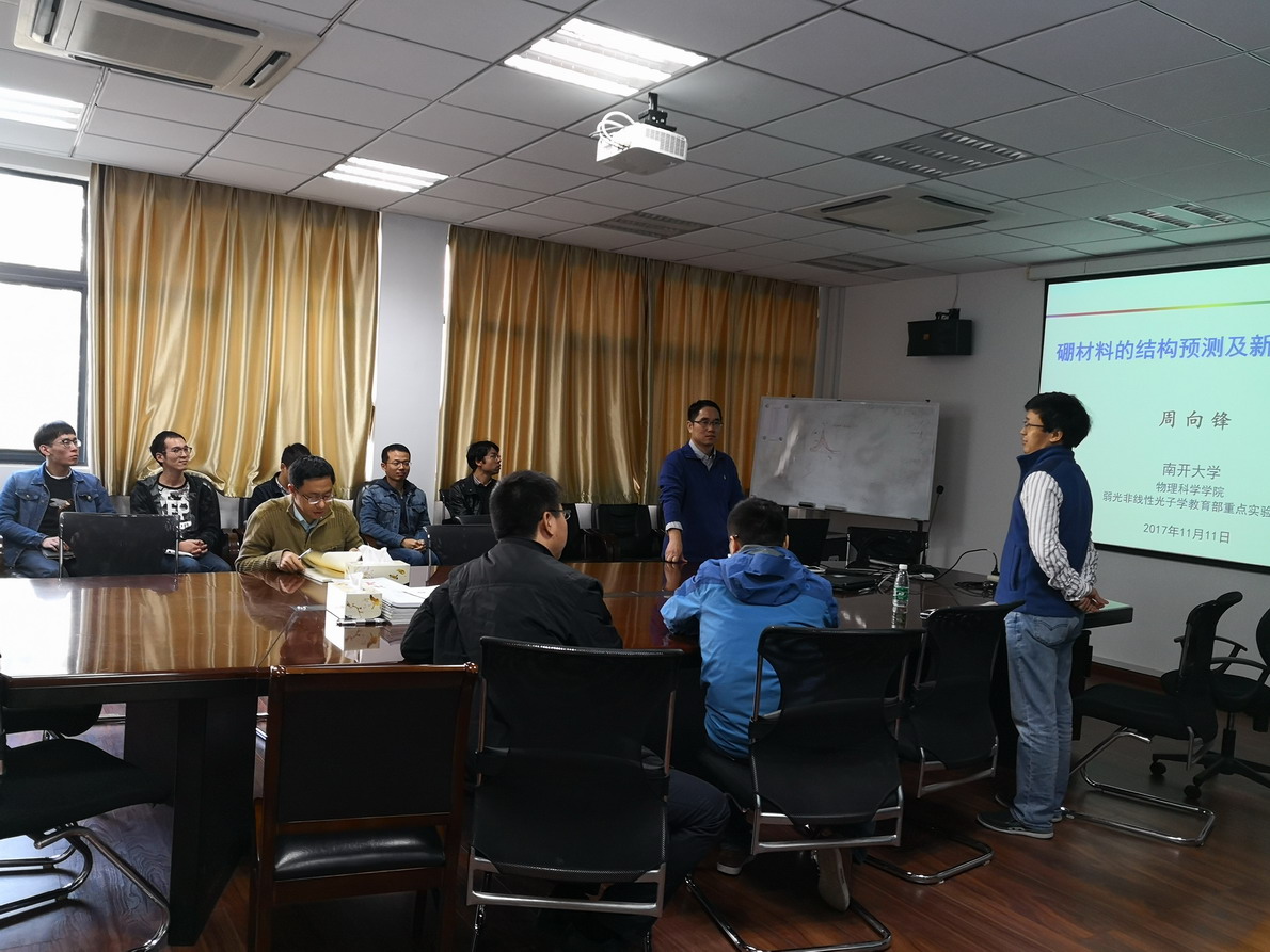 应公司航空宇航公司机械结构力学及控制国家重点实验室张助华教授邀请,南开大学物理科学公司周向锋教授于2017年11月9日至12日访问了公司,并于11月11日为公司师生做了题为“硼材料的结构预测及新颖物理性质”的学术报告。报告介绍了二维硼的结构和新颖物性预测,以及三维金属硼化物结构的计算表征等内容。报告内容丰富、生动、精彩,对公司相关科研工作具有借鉴作用。同时,周向锋教授还结合自己多年的研究经历,与现场听众分享了自己