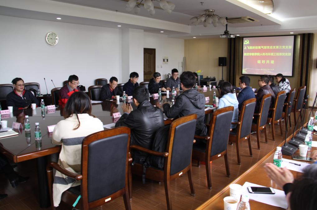 为了深入学习贯彻党的“十九大”会议精神,全面落实“两学一做”学习教育活动相关要求,进一步探索公司教工党支部党建工作新路子,11月18日,航空宇航公司人机与环境工程系党支部与中国商飞环控氧气部党总支第三党支部举行了支部共建签约启动仪式及首次交流活动,中国商飞环控氧气部部长、党总支书记、CR929项目机械系统高级项目经理李革萍总师、航空宇航公司党委书记孔垂谦、副经理蒋彦龙及双方共32名党员参加活动。