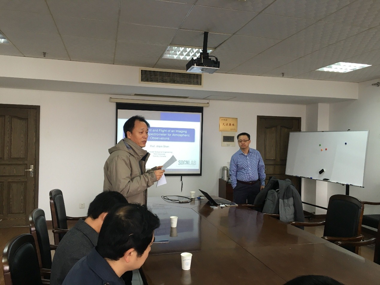 应公司航空宇航公司机械结构力学及控制国家重点实验室文浩教授邀请,约克大学陕晋军(Jinjun Shan)教授于2017年12月12日至13日访问公司,并于12月13日为公司师生做了题为“Development and Flight of an Imaging Fabry-Perot Spectrometer for Atmospheric Studies”的学术报告。陕晋军教授介绍了光谱仪技术在大气观测、分析领域的重要作用,报告了其课题组近年来在法布里-珀罗分光仪(FPS)的设计、研制和试验领域开展的大量工作,并分享了相关飞行试验的研究成果和重要经验。报告内容不但具有学术深度和高度,还十分详实、生动,对公司相关科研工作具有重要借鉴意义。同时,陕晋军教授还结合自己多年的研究经历,与现场听众分享了他在光学、控制、机械和力学等多学科领域的研究心得和体会。