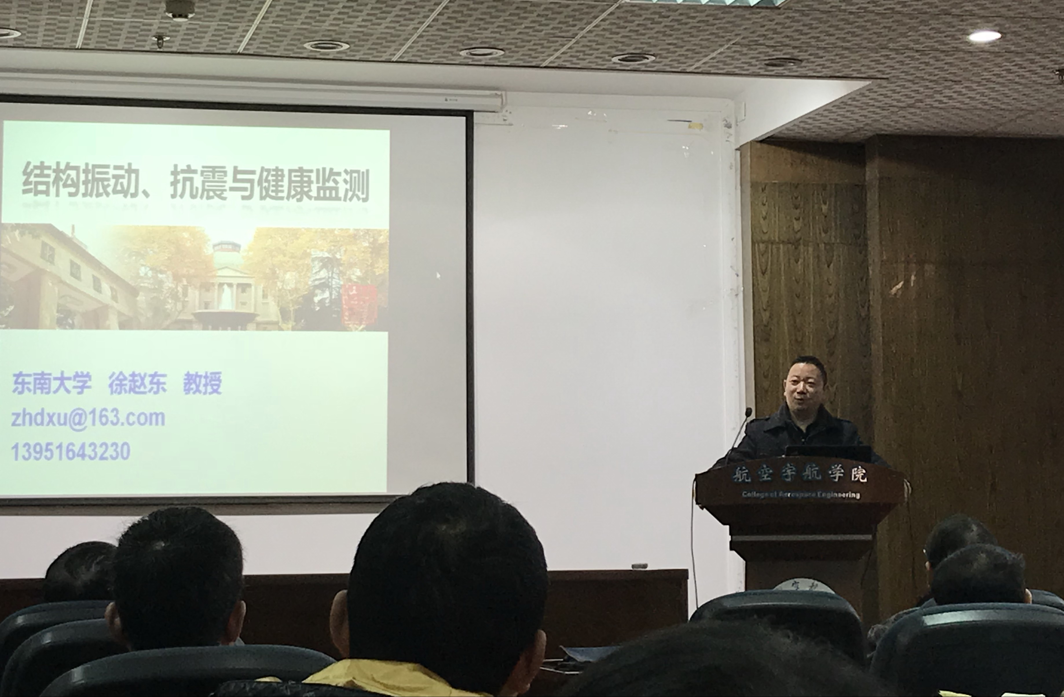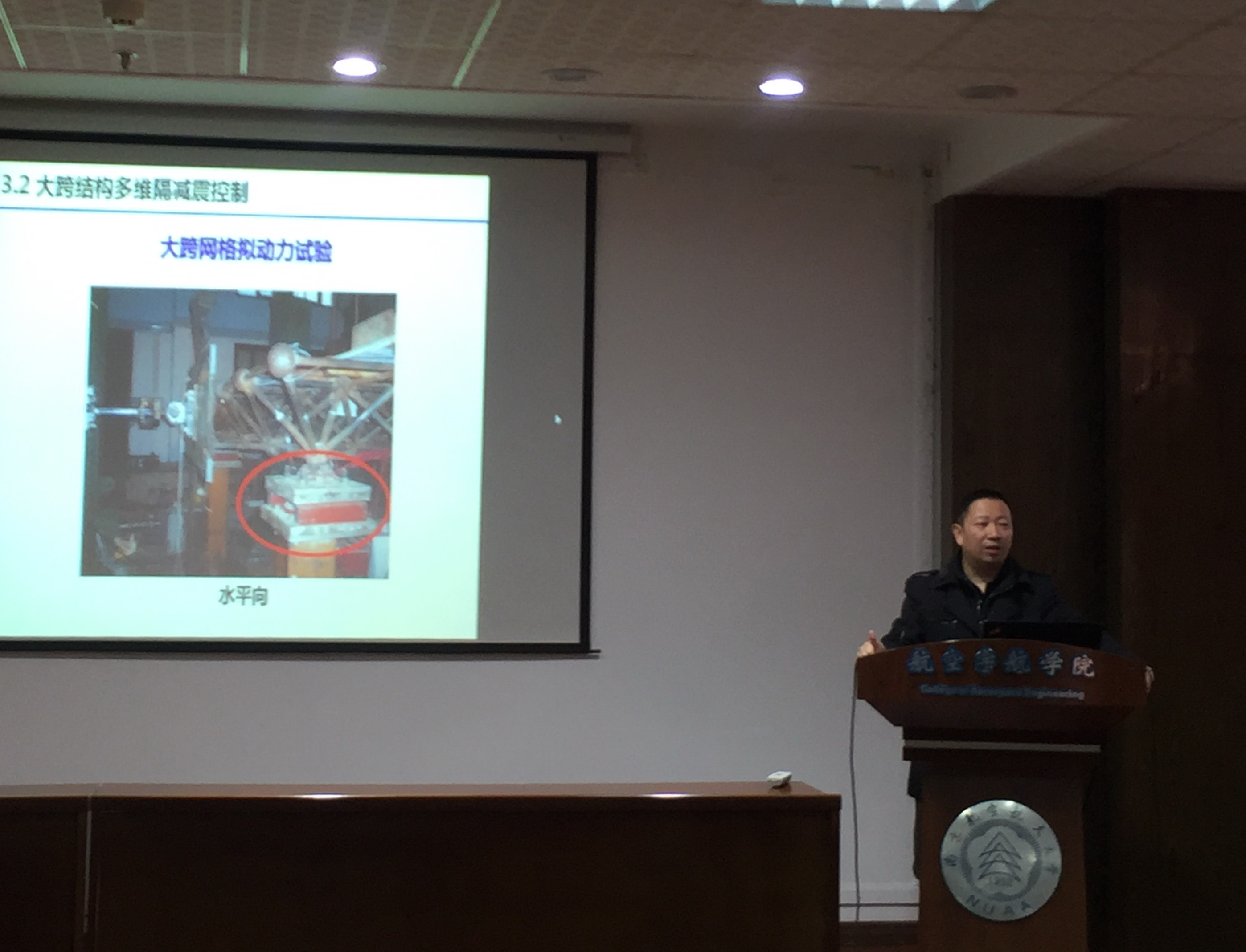 应公司航空宇航公司土木工程系吴瑾教授邀请,国家杰出青年基金获得者、东南大学混凝土及预应力混凝土教育部重点实验室副主任徐赵东教授于2017年12月19日访问了公司,并为公司师生做了题为“结构振动控制与健康监测的若干研究新进展”的学术报告。报告介绍了粘弹性材料研究、减隔震装置开发、减隔震结构分析设计与应用、结构健康监测等内容。报告内容丰富、生动、精彩,对公司相关科研工作具有借鉴作用。同时,徐赵东教授还结合自己多年的研究经历,与现场师生分享了土木工程抗震领域的研究心得和体会。吴瑾教授主持了学术报告会。