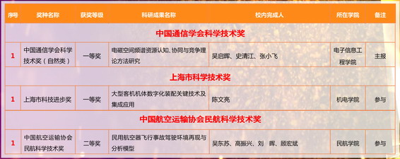 2017年公司电子信息工程公司吴启晖教授等申报的“电磁空间频谱资源认知、协同与竞争理论方法研究”获中国通信学会科学技术一等奖(自然类)。机电公司陈文亮教授等参与申报的“大型客机机体数字化装配关键技术及集成应用”获上海市科技进步一等奖。