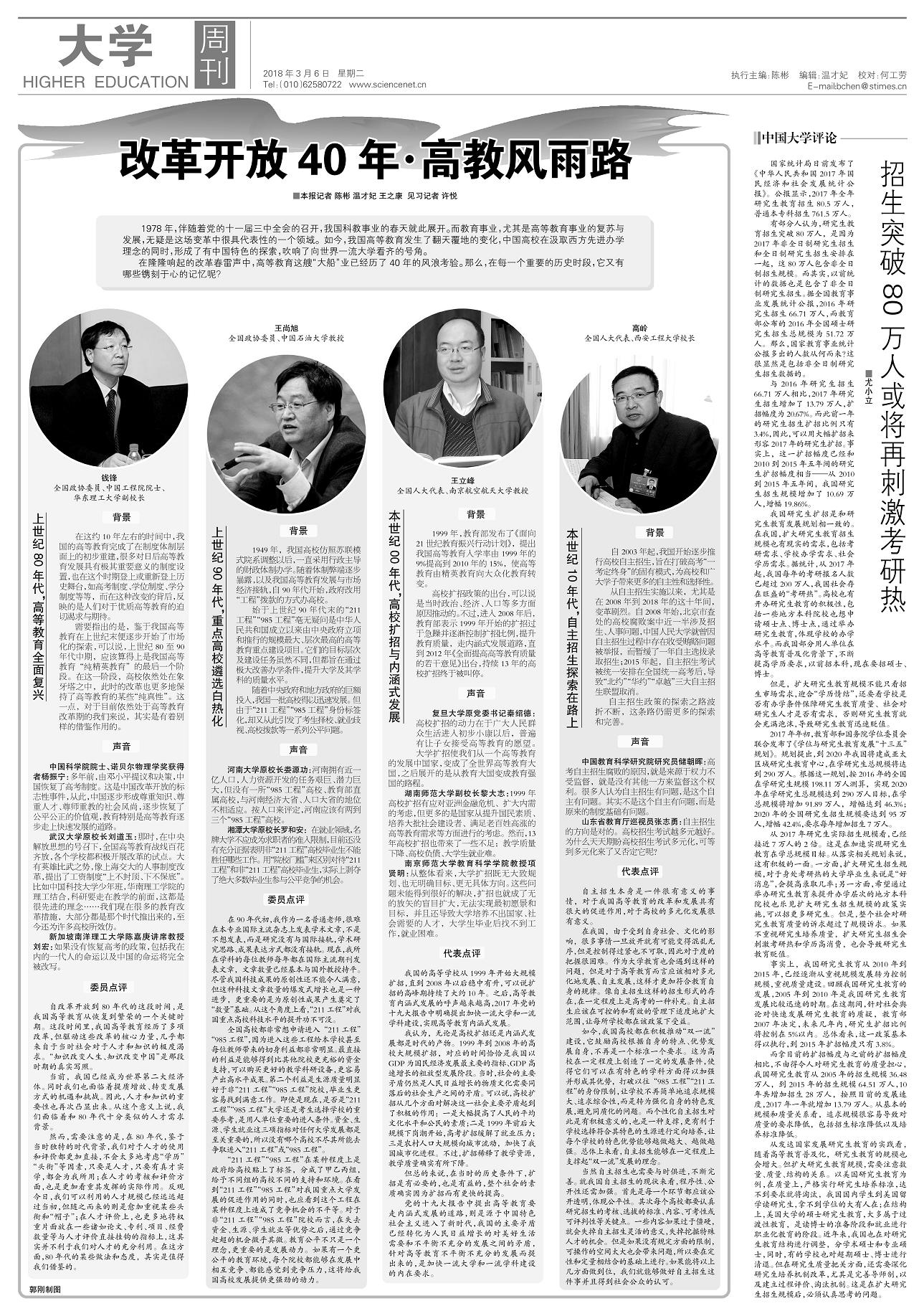 3月6日,《中国科学报》大学周刊两会特别报道之“改革开放40年・高教风雨路”,围绕高等教育40年的发展,对四位来自高校的人大代表、政协委员就行了专版报道,全国人大代表、公司航空宇航公司教授王立峰就高校扩招与内涵式发展进行了点评。