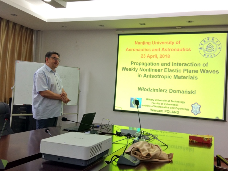 应公司航空宇航公司机械结构力学及控制国家重点实验室高存法教授邀请,波兰军事科技大学Wlodzimierz Domanski教授于2018年04月13日至23日访问公司,并就波的传播,尤其是波在非均匀介质中的传播问题,为公司师生做了4次学术报告(报告题目分别为:“Mechanical and Mathematical Properties of Quasicrystals”;“Weakly Nonlinear Asymptotics for Longitudinal and Shear Elastic Waves in Isotropic Materials”;”Mathematical Theory of Shock Waves”和” Propagation and Interaction of Weakly Nonlinear Elastic Waves in Anisotropic Materials”)。报告介绍了多种不同介质中波的传递形式,以及相应的数学模型的建立。报告内容丰富、生动、精彩,对公司相关科研工作具有借鉴作用。同时,Domanski教授还为公司师生介绍了波兰力学数学家在固体力学和波动力学领域所作出的突出贡献,生动形象地展示了波兰力学学科发展史。