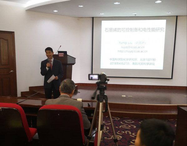 应公司机械结构力学及控制国家重点实验室郭万林院士邀请,中国科公司院士、中科院化学所刘云圻研究员于2018年4月26日至27日到访公司,为公司学子作了题为“石墨烯的可控制备和电性能研究”的报告。刘云圻院士介绍了石墨烯的基础知识和可能的应用,并展示了他们课题组在石墨烯可控制备和电性能研究方面的一些代表性成果,引起了与会师生极大的兴趣及热烈讨论。郭万林院士主持了这次报告。