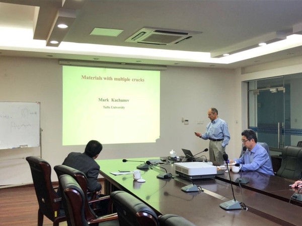 应公司机械结构力学及控制国家重点实验室钱征华教授邀请,塔夫茨大学Mark L. Kachanov教授于2018年3月28日至29日来公司学术访问,并于3月28、29日为公司师生做了题为“非均匀材料:微观结构性能联系与交叉性能关系”、“撰写科学论文-期刊编辑的评论”、“含裂纹材料的有效弹性性能”、“含有各种形状颗粒的悬浮液的粘度-与复合材料力学的类比”四个学术报告。报告内容丰富、生动、精彩,介绍了多种不同裂纹材料的有效弹性特性,并将各种形状颗粒的悬浮液的粘度与复合材料中的力学做出了类比。同时,Kachanov教授还结合自己多年担任期刊主编的经历,讲述了对于科学论文撰写的建议,对公司教师的高水平论文写作具有很好的借鉴作用。钱征华教授主持了此次报告会。