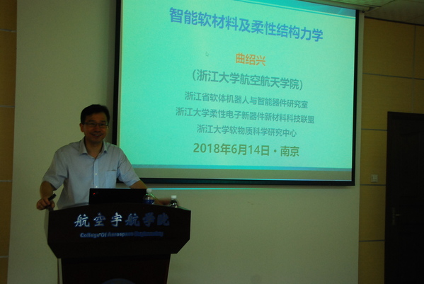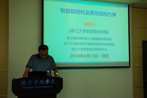 应公司航空宇航公司机械结构力学及控制国家重点实验室高存法教授的邀请,浙江大学航空航天公司副经理、国家杰出青年科学基金获得者曲绍兴教授于2018年6月13至14日访问了公司,并做了题为“智能软材料及柔性结构力学”的学术报告。沈星教授主持了报告会。