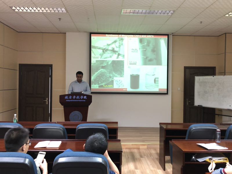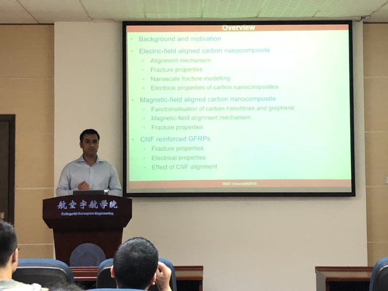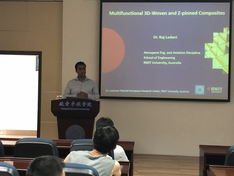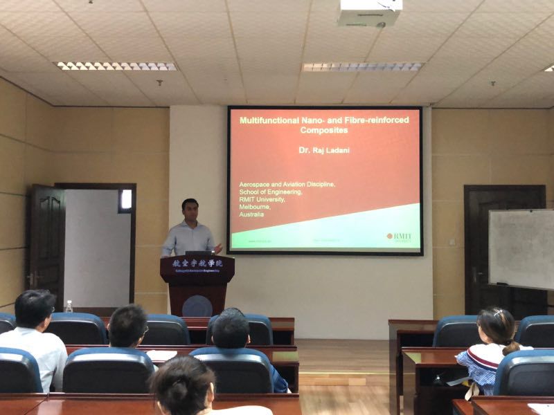 受bevictor伟德—皇家墨尔本理工大学“航空航天结构力学”国际联合实验室的学者互访项目支持,应公司航空宇航公司机械结构力学及控制国家重点实验室高存法教授的邀请, Raj Ladani博士于2018年6月18日至6月30日访问了公司,并做了三次报告。于6月22日做了题为Multifunctional Nano- and Fibre-reinforced Composites的报告,报告介绍了先进纤维增强聚合复合材料在航空航天工业上的应用,通过轻量化技术减少燃料的消耗和提高能量的转换率。然而,在没有厚度增强的情况下,层状复合材料容易受到层间和层内的分层损伤。针对这些挑战,报告中重点阐述了使用碳纳米增强材料提高环氧树脂复合材料的多功能性,该研究旨在探究碳纳米增强材料和环氧树脂复合材料断裂韧性以及电性能的关键参数,包括其重量、形状(一维CNTs和二维石墨烯)、取向(随机排列)和对准技术(电磁和磁场),并进一步分析了碳纳米复合材料取向对复合材料损伤检测的影响。接着,于6月26日为公司师生做了题为Multifunctional 3D Woven and Z-pinned Composites的学术报告,报告介绍了随着轻量化技术需求的发展,先进纤维增强聚合复合材料已广泛用于航空航天工业,分析了使用厚度加强对纤维复合材料层间脱层阻力的影响(包括3D编织和z-pinning),探讨了提高纤维增强复合材料的断裂韧性和电性能的关键参数,包括Z-粘结剂材料(热塑性、金属和结构纤维)的影响,以及它们的体积分数和结构(WEA)在改善断裂性能、导电性和自愈功能,该研究进一步证明了使用有限元建模技术去设计3D增强复合材料。最后,于6月28日为公司师生做了题为Improving Fatigue Resistance and Structural Health Monitoring of Composites的学术报告,报告介绍了在疲劳载荷作用下,复合材料及其结合结构的分层损伤可迅速发展为失效,针对这些问题,报告中重点分析了采用三维编织、z-pinning和纳米材料提高复合材料的抗疲劳性能,并证明纳米填充材料在复合材料结构健康监测中的应用等内容。报告内容丰富、精彩生动,对公司相关科研工作具有借鉴作用。同时,Raj Ladani博士还结合自己多年的研究经历,与现场听众分享了研究心得和体会。