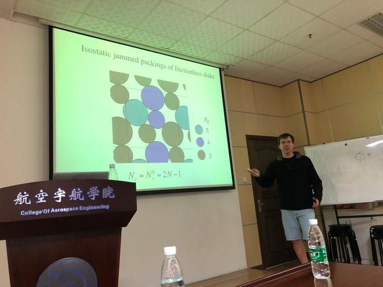 应公司航空宇航公司机械结构力学及控制国家重点实验室、航空航天交叉研究院王立峰教授的邀请,2018年5月3日下午3点,来自耶鲁大学的Corey S O'Hern教授来到航空宇航公司参观交流,并在18号楼526报告厅做了一场题为“The response of jammed packings to thermal fluctuations”的报告。