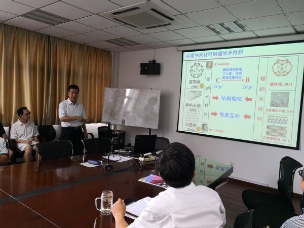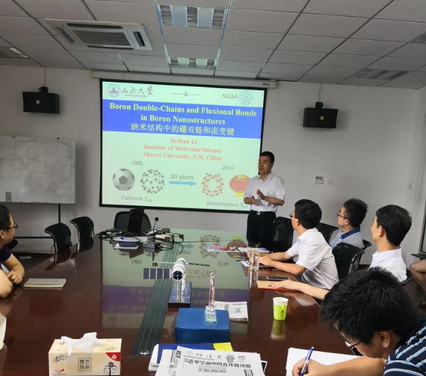 应公司航空宇航公司机械结构力学及控制国家重点实验室张助华教授的邀请,山西大学党委副书记(正校级)、分子科学研究所李思殿教授于2018年8月10至11日访问了公司,并于8月10日做了题为“Boron Double-Chains and Fluxional Bonds in Boron Nanostructures”的学术报告。李思殿教授在报告中详细介绍了硼双链与碳链等价的研究思路,并以此为基础解析了诸多硼纳米结构的特征。同时,李教授还提出了硼的流变键的概念,介绍了多种具有轴承性质的平面硼分子。最后他还结合金属硼化物分享了在金属硼团簇方面的研究进展。报告内容丰富、精彩生动,对公司相关科研工作具有重要参考和启发作用。公司郭万林院士参加了报告会;报告会由张助华教授主持。
