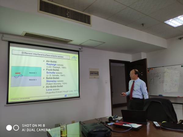 应我校航空宇航公司机械结构力学及控制国家重点实验室高存法教授邀请,德国锡根大学土木工程系系主任、欧洲科公司院士张传增教授及浙江大学航空航天公司工程力学系、国家杰青、长江学者陈伟球教授于2018年8月20日访问了公司,并分别为公司师生做了题为“Surface and interface elastic waves in phononic crystals and metamaterials”及“周期结构中的波及其调控”的学术报告。报告分别介绍了声子晶体的有限元仿真技术及理论分析模型。张传增教授、陈伟球教授还分享了他们在超材料研发、算法优化和理论建模等相关研究领域的心得和体会。报告内容丰富、生动、非常精彩,对公司相关科研工作起到重要的借鉴和启发作用。高存法教授主持了报告会。