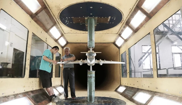 航空宇航公司低速风洞实验室的21名教师和工程技术人员,在八月初完成3项直升机模型风洞试验,目前正在进行哈飞公司的运-12F的改型试验。夏天进行风洞试验,高温是对实验人员的很大考验,实验大厅最高气温高于室外温度,风洞内气温达45℃以上,每次进风洞换一次模型状态都是一身汗。