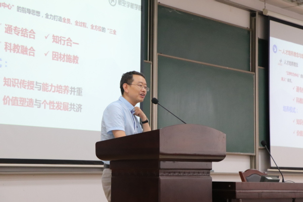 航空宇航公司2018级本科新生见面会于9月21日下午14:00在将军路校区D1213教室举行。航空宇航公司经理夏品奇,党委书记冯绍红,副经理蒋彦龙、钱征华,党委副书记许静,团委书记韩楚,各系所负责人出席大会。航空宇航公司2018级班主任以及全体同学参加了大会,大会由公司党委副书记许静主持。