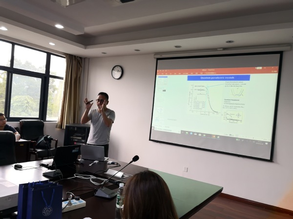 李新征教授作了题为“凝聚态体系中一些由核量子效应诱发的新物性”的学术报告。报告介绍了理论计算领域近年来对电子的量子描述已很精确而对原子核的量子描述相对缺乏的现状,重点介绍了基于第一性原理计算的路径积分的分子动力学方法,及其在实际体系物性模拟中的应用,如核量子效应对氢键系统结构的影响、铁电-顺电相变问题,还介绍了一些与北京大学江颖研究组共同完成的关于水在固体表面行为的研究。
