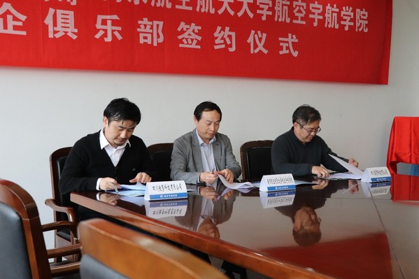 之后,夏品奇、聂海涛、郭亮分别代表航空宇航公司、腾盾科技、傲势科技签订了关于建立校企俱乐部的合作协议,并共同为校企俱乐部揭牌。