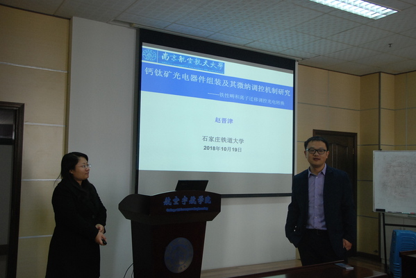 应公司航空宇航公司机械结构力学及控制国家重点实验室高存法教授的邀请,北京理工大学范天佑教授和石家庄铁道大学赵晋津教授于2018年10月18日至19日访问了公司,并于10月19日分别做了题为“数值相对论简介”和“铁性畴和离子迁移对钙钛矿太阳能电池的光电转换性能影响研究”等两个学术报告。