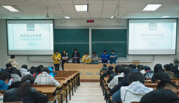 在第五个南京大屠杀死难者国家公祭日之际,航空宇航公司于12月13日晚在4201举行了“做历史的朗读者”素养公开课暨国家公祭日主题教育。航空宇航公司团委书记韩楚、辅导员宗思雨、吴静文、2017、2018级员工参加主题活动。