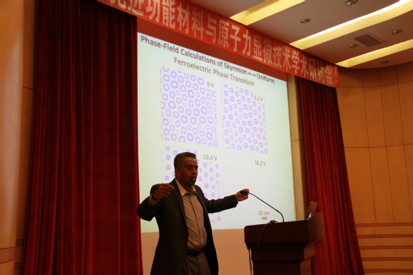 在随后的两天里,郭万林院士、王中林院士、Ramesh院士、David Ginger教授、潘晓晴教授、马秀良教授、陈龙庆教授、熊克教授和Sang-Wook Cheong教授等9位代表分别作了大会邀请报告,这些著名专家的工作引起了参会者的极大兴趣和热烈的讨论。