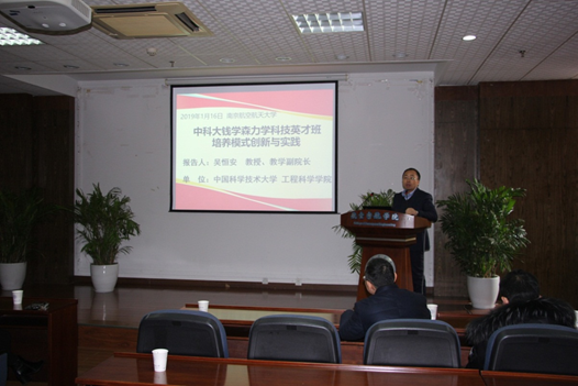 2019年1月16日,中国科学技术大学工程科学公司副经理、研究生院副经理吴恒安教授访问了公司,并做了题为“中科大钱学森力学科技英才班培养模式创新与实践”的教学报告。