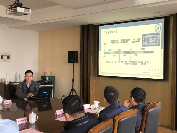 朱林刚副所长主要介绍了上飞院飞机型号的发展历程、目前三所人员结构、与南航的科研合作回顾等。结构强度团队就团队定位及研究方向、合作项目、技术难题攻关需求等内容向公司到场师生做了详细介绍。