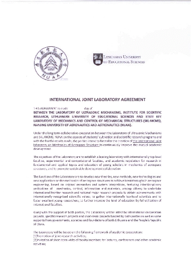 南航与立陶宛教育科学大学、立陶宛维尔纽斯技术大学联合成立压电精密驱动技术联合实验室