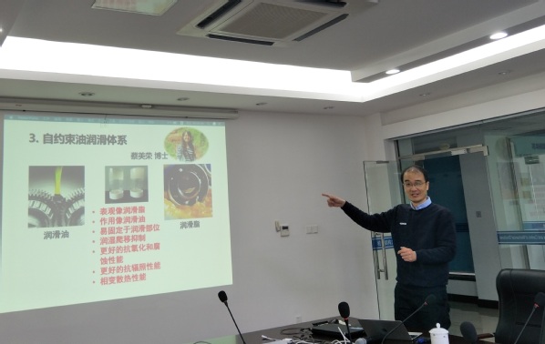 报告介绍了功能性仿生亲水润滑材料、高效减阻机理、具有湿-滑调控特征的仿生材料和器件等方面的研究进展。报告内容丰富、精彩生动,报告会由郭宇锋教授主持。会后,周峰研究员与公司师生做了深入的交流和探讨及补充和解答。