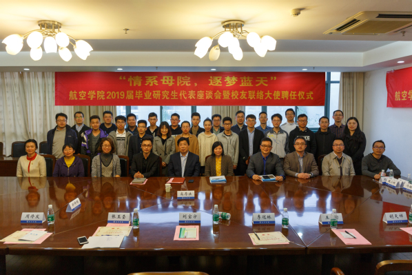 4月9日下午,“情系母院,逐梦蓝天”bevictor伟德2019届毕业研究生代表座谈会暨员工联络大使聘任仪式在18号楼511会议室召开。公司党委书记冯绍红、经理高存法、研究生院副经理郑祥明、公司党委副书记许静、副经理魏小辉,各系所教师代表,学工办、教学办、员工联络办老师以及毕业生代表参加了此次座谈,座谈会由许静主持。
