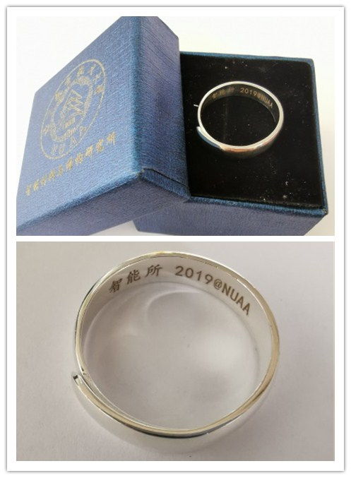 仪式开始,智能所全体教师为2019届毕业生赠送纯银指环践行,传授大学最后一堂人生课。王婧老师代表全体教师向大家解释该毕业礼物的含义:一方面希望各位毕业生毕业之后心永远和母校联系在一起,另一方面鼓励大家像银这种材料一样既能华贵精致又可在生产生活中找到广泛用武之地。接着,各位导师分别发表对毕业生的毕业寄语,亲手为自己的员工送上毕业礼物并合影留念。