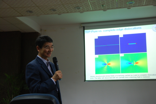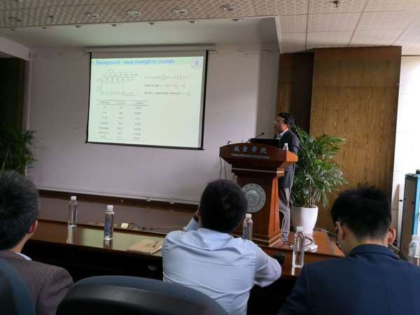报告从金属材料体系中位错的基本理论出发,深入浅出地介绍了不同位错的应力场特征和在高应变率下的动力学行为,特别介绍了螺型全位错和螺型孪晶界不全位错都能稳定地以声速滑移,运动速度甚至能达到超声速。本报告内容刷新了传统连续介质力学中对超声速位错的认识,首次揭示了超声速螺位错的存在,为晶体材料的动态力学行为,以及孪晶界面的位错运动提供更深入的理解。报告内容精彩、引起了现场师生的激烈讨论,报告会由张助华教授主持。会后,魏宇杰教授与公司师生做了深入的交流和探讨及补充解答。