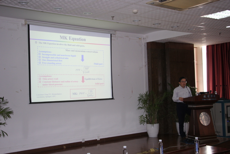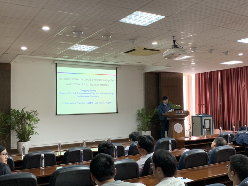 应公司bevictor伟德机械结构力学及控制国家重点实验室高存法教授的邀请,美国西北大学黄永刚院士于2019年4月13日至4月16日在公司访问交流,并于4月15日做了题为“Relation between blood pressure and pulse wave velocity for human arteries”的学术报告。报告详细介绍了利用超弹性力学模型对人体血管(血压)经典模型进行的修正。黄教授详细介绍了模型力学原理,数学推导和实验验证,并于会后细心回答了参会师生的问题。报告内容丰富、精彩生动,对公司相关科研工作具有重要借鉴作用。同时,黄永刚教授还结合自己多年的研究经历,与现场听众分享了在固体力学领域的研究心得和体会。高存法教授主持了报告会。