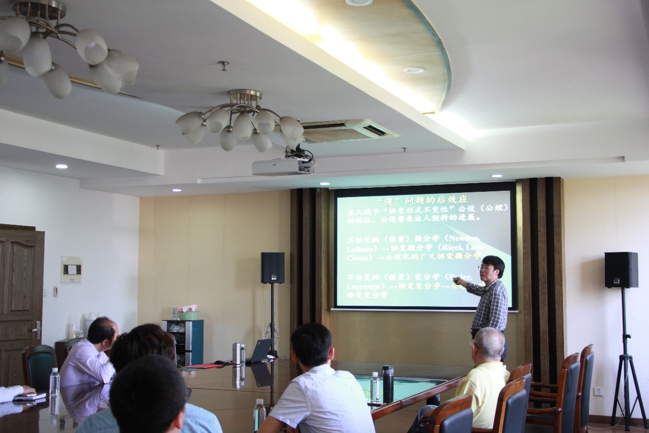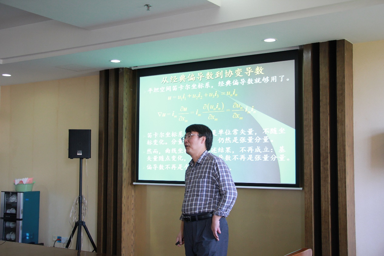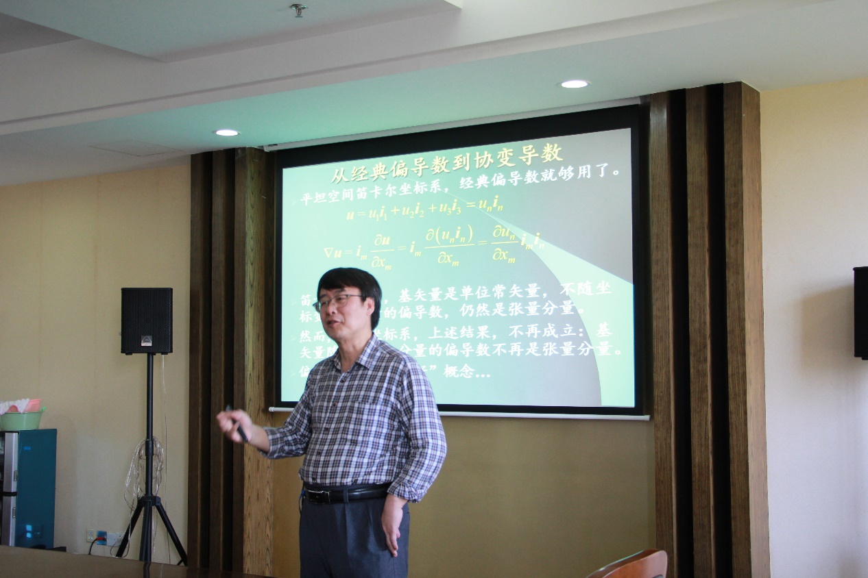 报告人讲述了在 《张量分析》的课堂上,受到博士生提出的“傻”问题的启发,并展开研究取得的新的研究进展——经典的协变微分学,被发展成了广义协变微分学;经典的变分学,被发展成了协变变分学和广义协变变分学。由此,分享了自己关于教学研相辅相成、相互促进的一些心得,并与公司师生就相关领域的研究进行了交流和讨论。报告会由王立峰教授主持。
