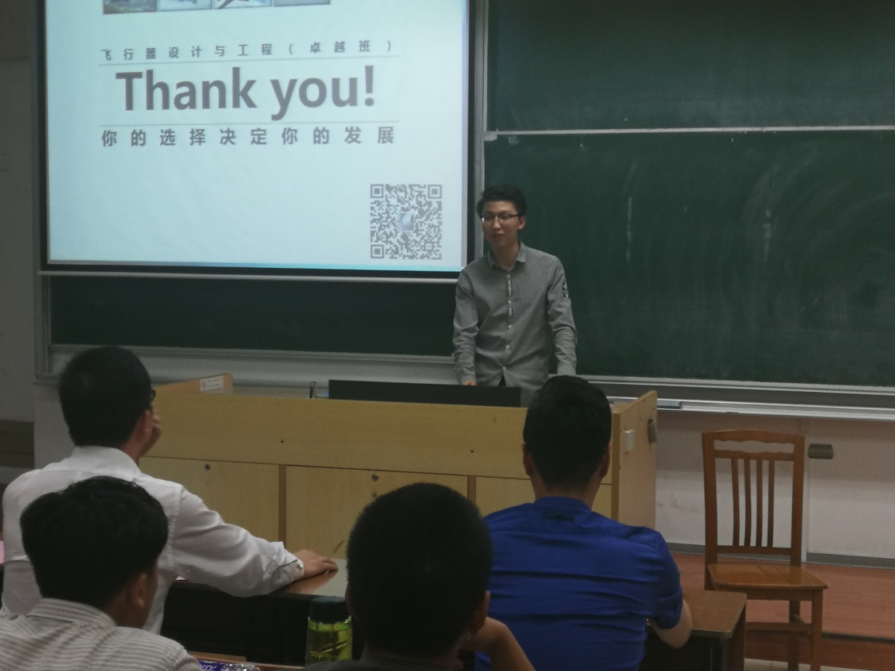 2019年5月29日晚上7点,bevictor伟德在将军路校区6301教室召开2018级飞行器设计与工程专业卓越计划选拔宣讲会。宣讲会面向2018级飞行器设计与工程专业的同学们,旨在让同学们能够更好的深入了解卓越计划及卓越班的情况。2016级卓越班班主任、研究生院副经理郑祥明,bevictor伟德副经理魏小辉,bevictor伟德飞行器系副主任李洪双,公司教学办胡挺、蒋亚明以及2015级卓越班员工代表张昊天同学参加了招生宣讲会,为同学们全面的介绍卓越班并给大家答疑解惑。宣讲活动由2018级辅导员张小斐主持。