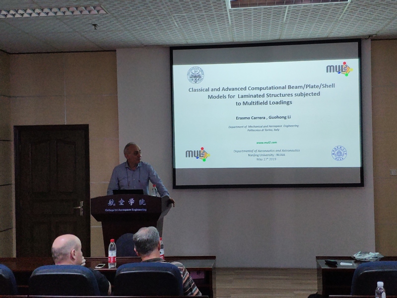(报告人简介)Erasmo Carrera is Professor of Aerospace Structures and Aeroelasticity at Politecnico di Torino, Italy, where he graduated in Aeronautics, 1986, and Space Engineering, 1988. He earned a Ph.D. in Aerospace Engineering in 1991. Carrera has introduced the Reissner Mixed Variational Theorem, RMVT, as a natural extension of the Principle of Virtual Displacement (PVD) for layered structure analysis. He introduced the Unified Formulation, or CUF (Carrera Unified Formulation), as a new framework to develop linear and nonlinear theories of beams, plates, and shells for metallic and composite multilayered structures under mechanical, thermal electrical and magnetic loadings. Carrera is author and coauthor of about 800 papers and a few recent books. He is founder and leader of the MUL2 group at Politecnico di Torino. The MUL2 group has six staff members and some 15 grad students or Post-Docs with a project portfolio of some ten active projects funded by the European Commission, the Italian government, Politecnico di Torino and industrial partners such as Embraer. Main awards and roles: Highly Cited Researchers (Top 100 Scientist) by Thompson Reuters in two sections - Engineering and Materials (2013) and Engineering (2015); Editor-in-Chief of Mechanics of Advanced Materials and Structures; Founder and Editor-in-Chief of Advanced in Aircraft and Spacecraft Sciences; Member of Accademia delle Scienze di Torino, founded by Lagrange et alii; President of A.I.D.A.A. (Associazione Italiana di Aeronautica ed Astronautica).