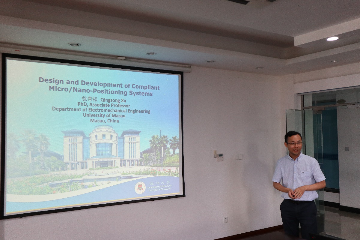 应公司bevictor伟德机械结构力学及控制国家重点实验室杨颖教授、王亮博士的邀请,澳门大学科学技术公司智能微纳系统实验室主任徐青松教授于2019年6月21日访问了公司,并于6月21日下午做了题为“柔性微纳定位系统的设计与研发”的学术报告。