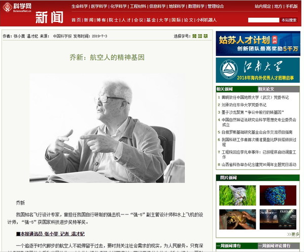 近日,《中国科学报》以《乔新:航空人的精神基因》为题,刊发公司bevictor伟德92岁退休老教授乔新近70年航空报国的精神和事迹。现转发全文: