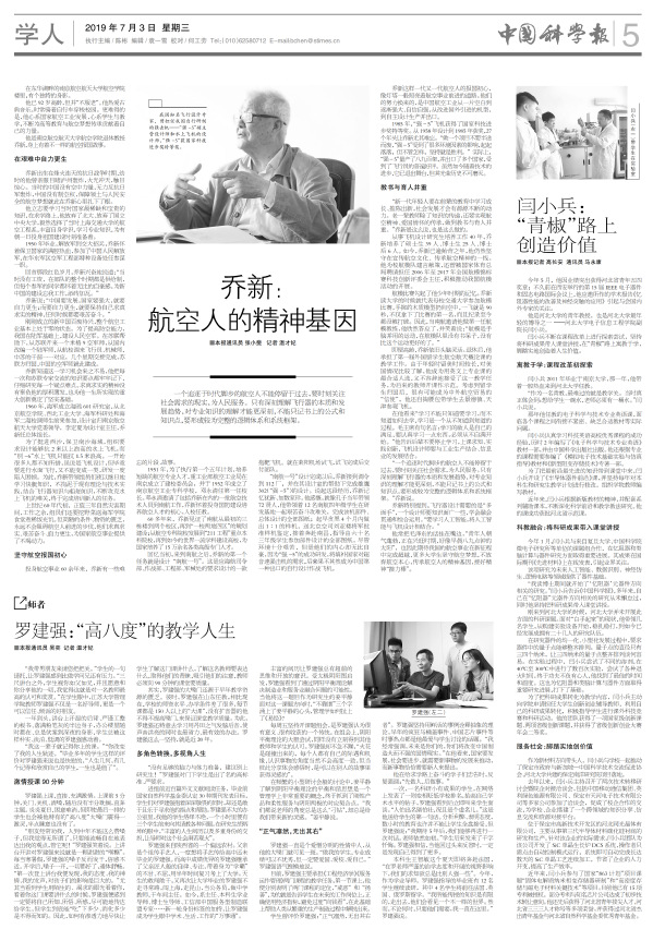 “新一代年轻人要在前辈的教育中学习成长、推陈出新,社会发展才会有源源不断的动力。老一辈教师除了知识的传递,还要实现航空精神、爱国情怀的传承,做到教书与育人并重。”乔新是这么说,也是这么做的。
