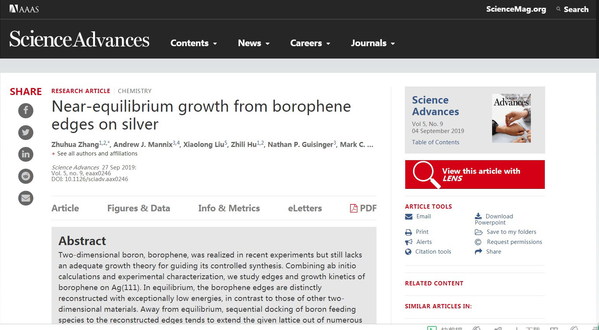 近日,科学子刊Science Advances在线发表了公司纳米科学研究所团队关于硼烯形状与生长机制的研究成果。