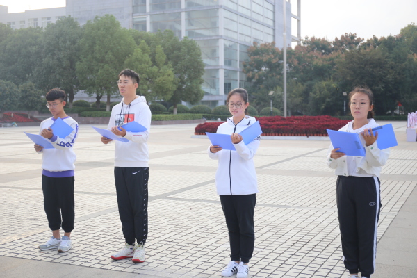 7点升旗仪式在两校区准时开始。在全体人员的瞩目下,五星红旗进场,伴随着庄严肃穆的《义勇军进行曲》,全体人员唱响国歌。46秒后,红旗冉冉飘扬,在场师生深情注视,表达了对祖国深沉的热爱以及崇高的敬意。