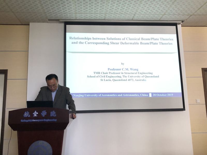 应公司航空宇航公司机械结构力学及控制国家重点实验室高存法教授的邀请,昆士兰大学Chien Ming Wang教授于2019年10月19日-2019年10月22日访问公司,并于10月20日做了题为Relationships between Solutions of Classical Beam/Plate Theories and the Corresponding Shear Deformable Beam/Plate Theories的学术报告,沈星教授主持了报告。