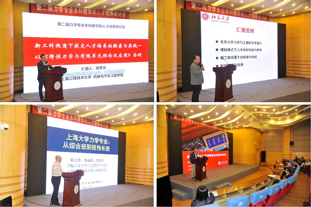 27日上午,上海大学陈立群教授、北京大学荣起国教授、bevictor伟德吕宏强教授、上海交通大学刘铸永副教授、上海工程技术大学刘学文高工分别作了《上海大学力学专业:从综合班到钱伟长班》、《新工课背景下理科力学专业的培养模式探索》、《力学为核心的学科交叉教学和人才培养的实践和思考》、《新工科理论力学课程建设的探索与实践》、《新工科视角下拔尖人才培养的探索与实践 以弹性力学有限单元法课程改革为例》报告。
