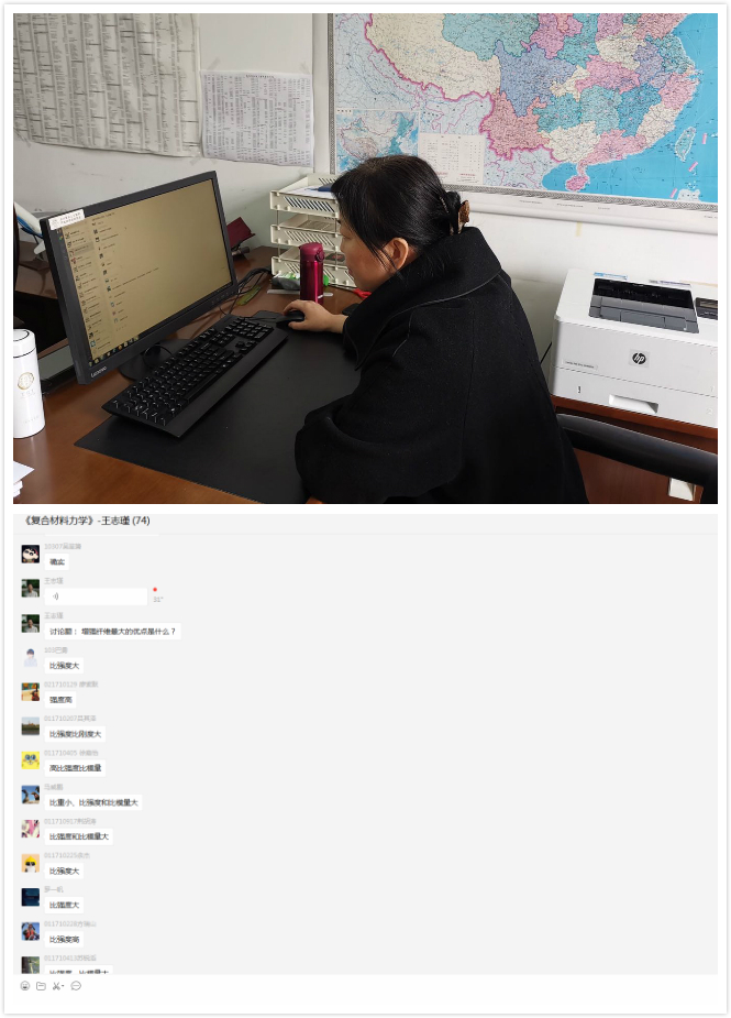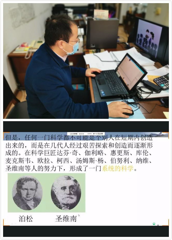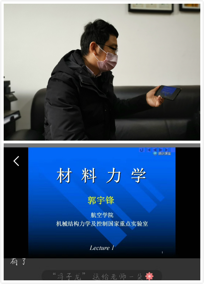 《材料力学I》任课教师郭宇锋教授老师介绍了该课程线上教学的准备情况。此前,郭教授已经对雨课堂、腾讯课堂等网络教学平台进行了评估和学习,提前与员工进行了过多次模拟教学。针对此次线上教学,为取得良好的教学效果,郭教授所在的材料力学课程教学组进行了多轮研讨,进行了充分的准备。最后,冯绍红书记指出:自从新冠肺炎疫情爆发以来,公司全体同学,响应号召、遵守纪律、科学防疫、居家修学,有也不少同学在保护好自己的同时积极参与抗疫志愿活动,展现了我们航空学子的责任担当。当前的疫情防控进入全面总攻阶段,我们必须清醒地认识到,防控形势依然复杂严峻,希望同学们继续按照公司和、公司的部署,严格要求自己,从我做起,以航空学子的眼界与格局,传播科学正确的信息,弘扬战“疫”正能量,传递温情与仁爱,坚持线上线下的课业学习,期待同学们的平安归来!